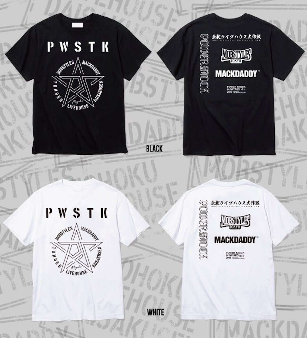 - 東北ライブハウス大作戦 x MOBSTYLES x MACKDADDY「繋ぐ」コラボTシャツ "POWER STOCK in MIYAKO 2019 TEE" ¥3,500(税別)