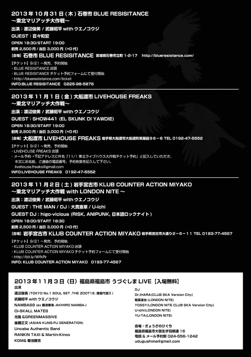 10月27日(日)17:30/18:00いわき CLUB SONIC