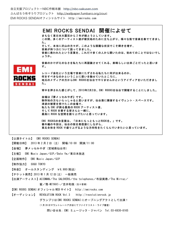 【EMI ROCKS SENDAI オフィシャル WEB サイト】 http://emirocks.com
