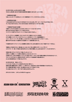 状況報告はサンボマスターのHPにて随時報告致しますので、ご協力お願い致します。