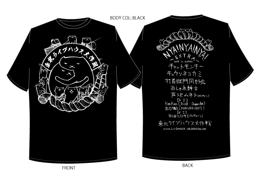 当日”NYA! NYA! NYA! 〜EXTRA〜×東北ライブハウス大作戦コラボTシャツ”を販売。