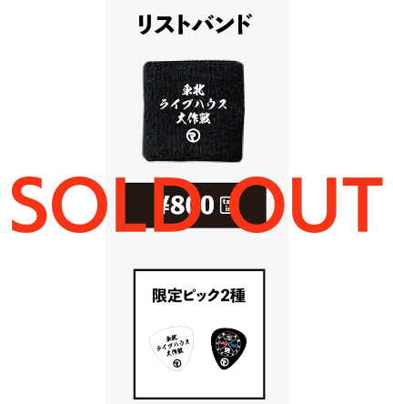 - 東北ライブハウス大作戦:リストバンド ¥800 *オリジナルピック先着特典配布