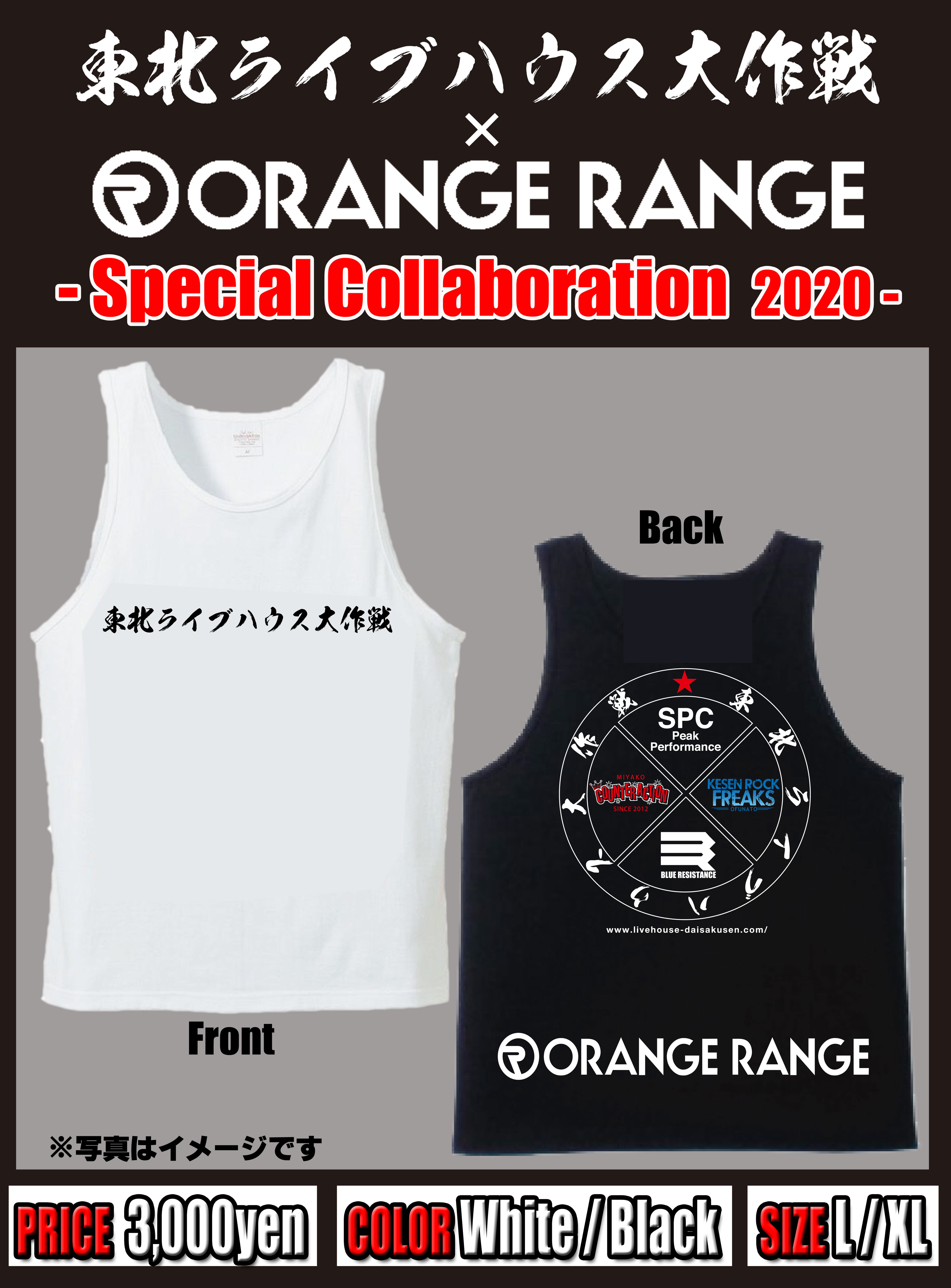 - -Special Collaboration vol.3- 東北ライブハウス大作戦×ORANGE RANGE コラボタンクトップを販売しました。
